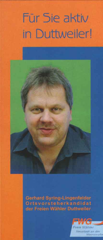 Wenn Ihre Wahl auf mich fällt, kann ich nicht nur meine Erfahrungen aus dieser Zeit sondern auch meine Ideen mit vollem Engagement für Duttweiler einsetzen.